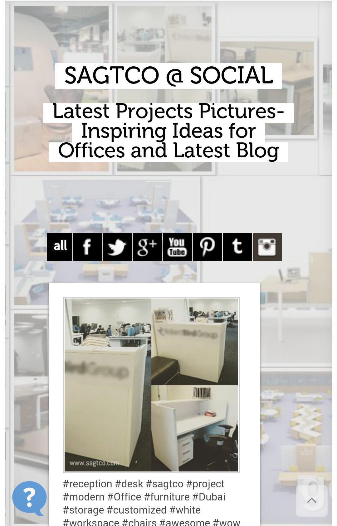 Check out our new SAGTCO@Social get inspired from fresh design-ideas for your office, checkout our awesome office-furniture projects recently delivered and read latest post on how to turn your workspace into a pleasurable-working experience